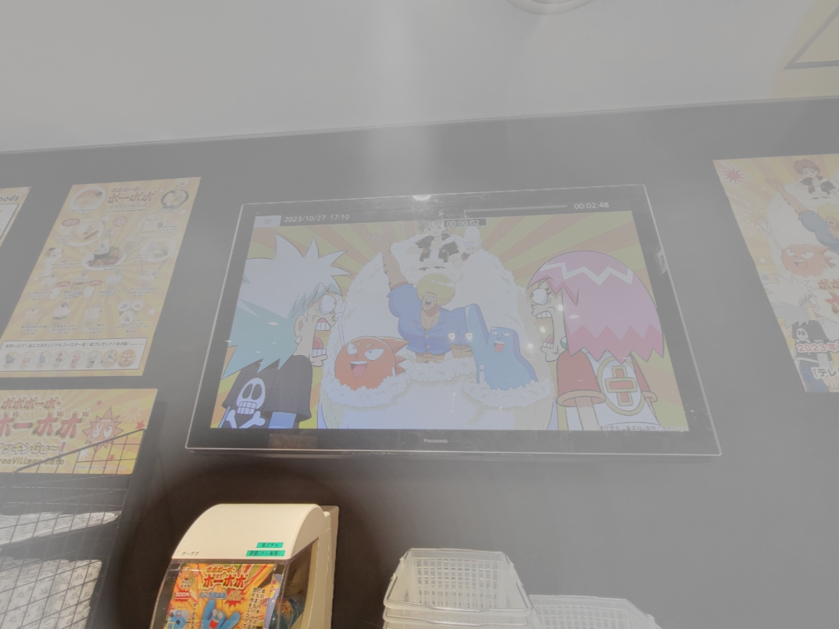 カフェメニューやグッズの紹介、キャラ紹介などが上映されてます。