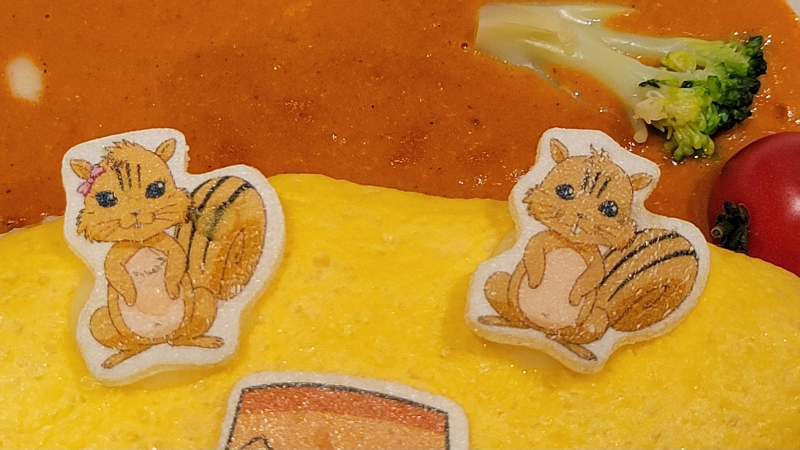 ちなみにリスたちをオムに接着してる素材はチーズでした。