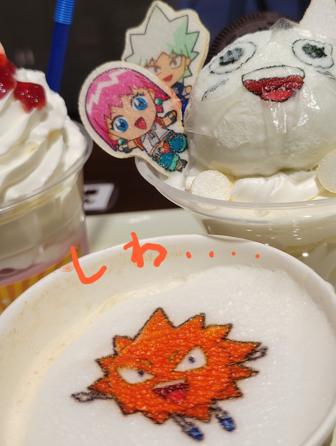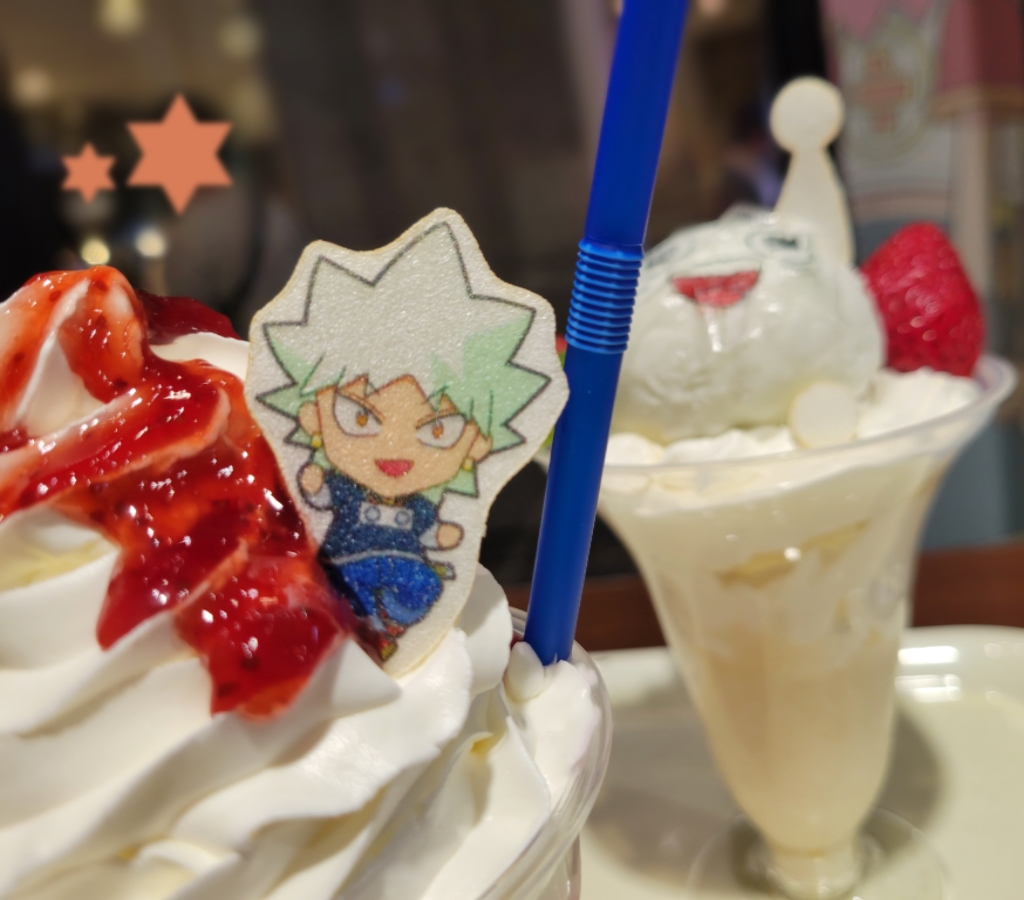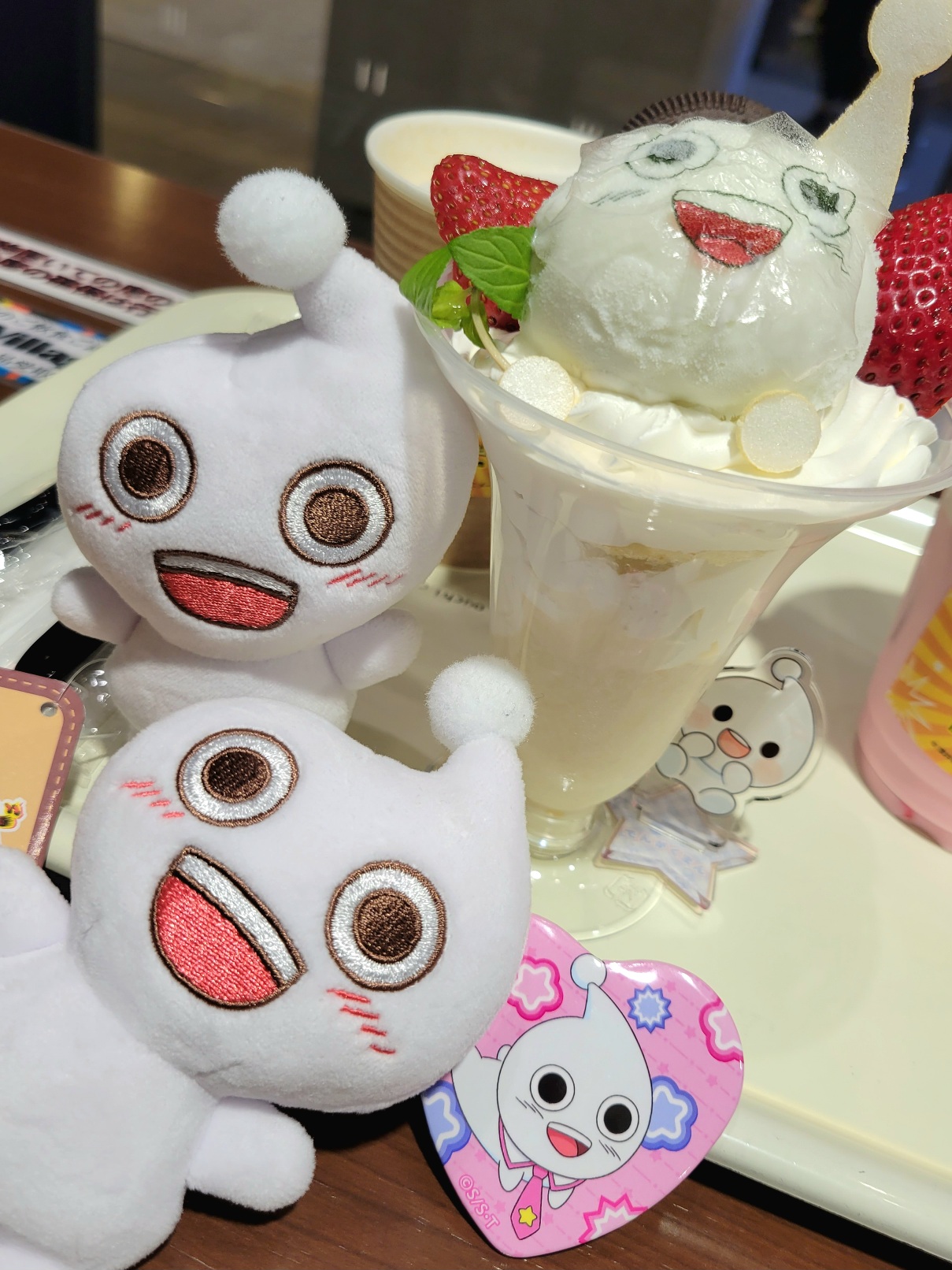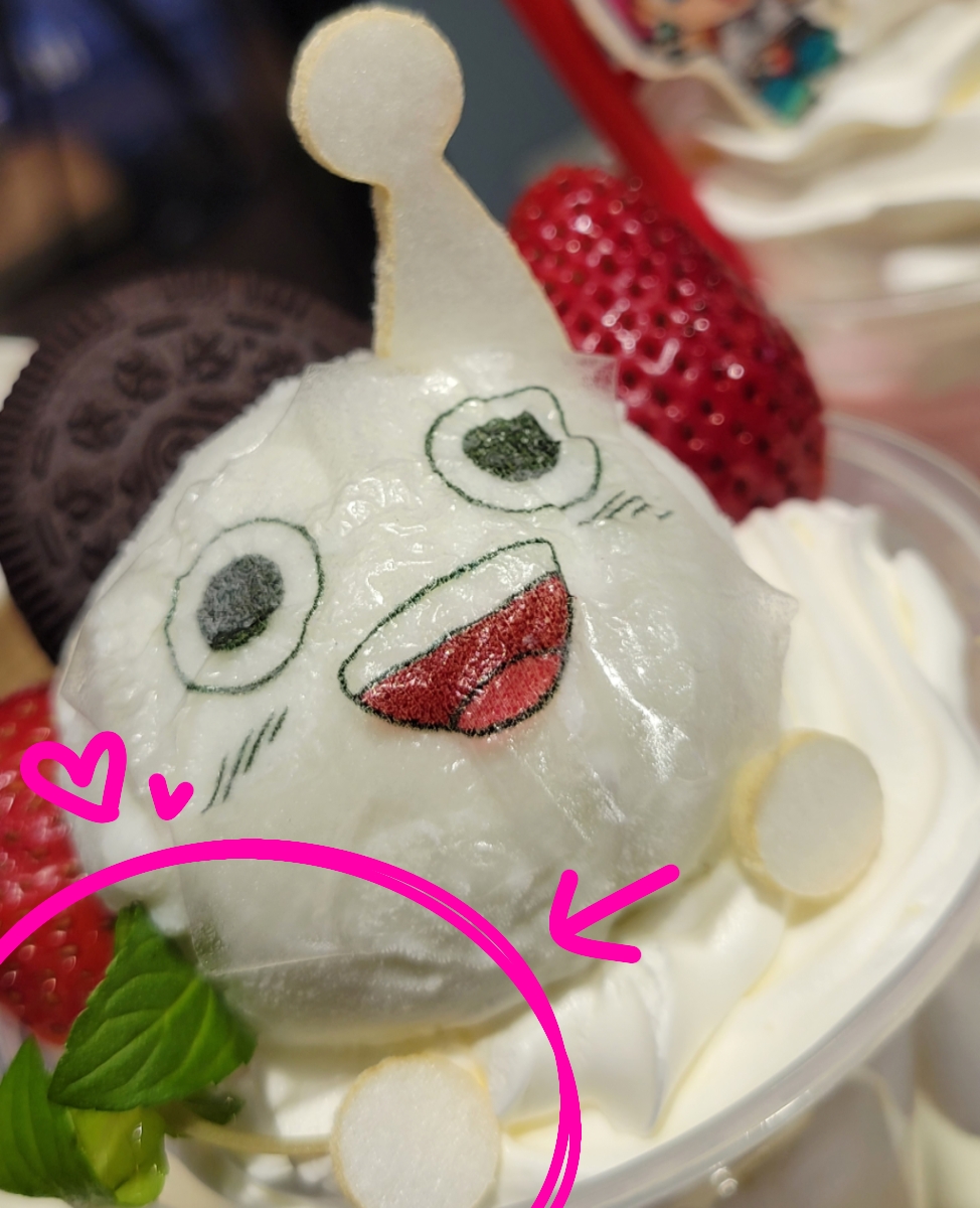 ビュティとへっくんのいちごミルク~~!!かわいい~~~!!!!惜しみ無く盛られたクリームが食後の胃袋を襲うッ!!!