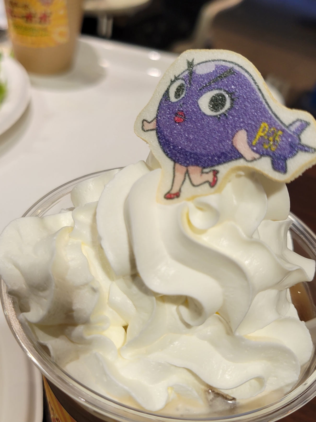 生クリームなのでそんなに溶けません。ドリンクとかき混ぜて飲もうとするとわりと塊が残ります。型崩れしにくいので撮影時は助かりますね。